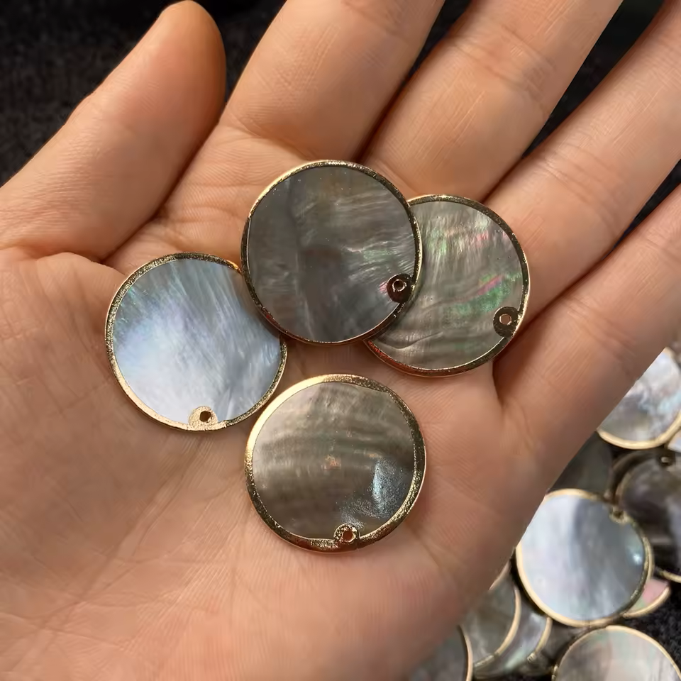 It is a flat round 30 mm diameter attractive pendant made of a large natural mother of pearl thin-cut disc. It has the same frequencies & rates database recorded in it, including your personal vibratory ("life") rate and your unique "Peter Garyaev" Wave Genetics matrix as RIFE RING described above.